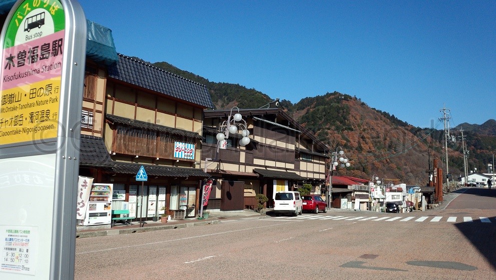 Shops and ryokan Yamamizuki URARA Tsutaya right in front of Kiso-fukushima Station